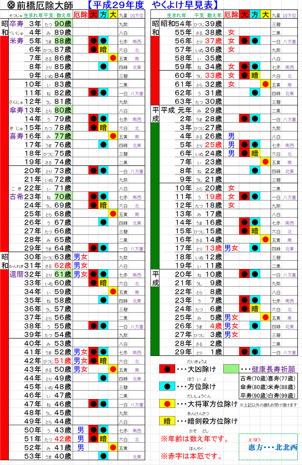 平成28年やくよけ表 については、お電話でお問い合わせください。