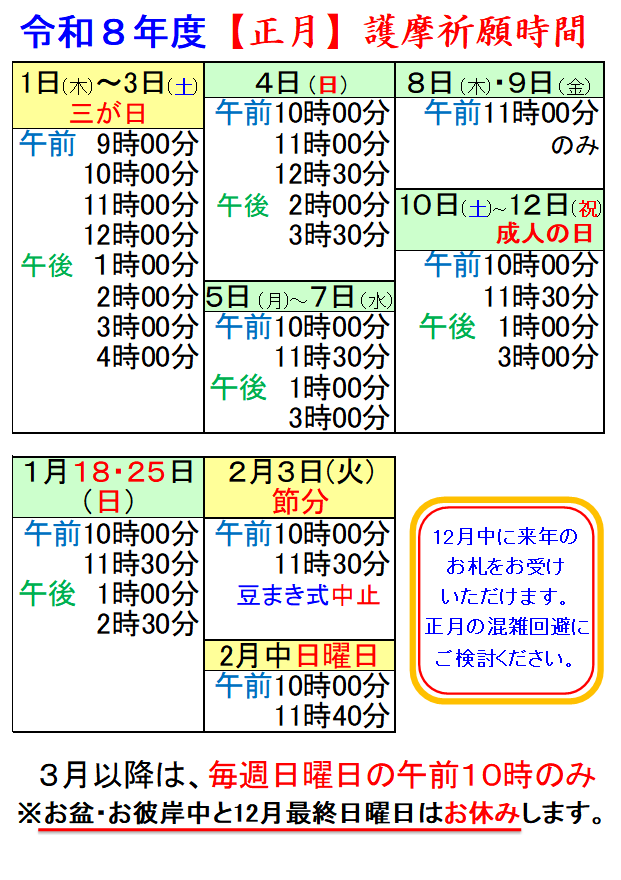 正月の受付や本堂内の混雑回避に是非ご検討ください。