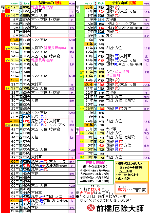 令和8年(2026年)ーやくよけ早見表(pdf)